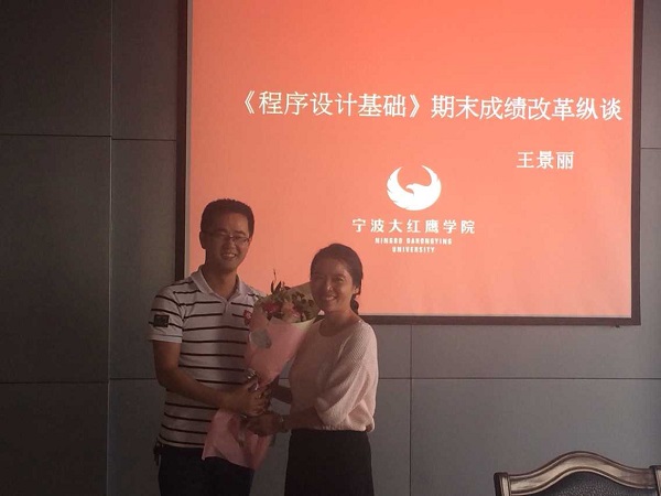 9月24日下午15:30分,信息工程学院举行了程序设计基础课程成绩改革纵谈为主题的教学沙龙活动。本次活动由教学院长孟院长主持致辞,并给主讲人王景丽老师献花。另外学院还为本次活动准备了丰富的水果供老师们品尝。院长王明及其他多位老师参与了本次沙龙活动。活动围绕课程成绩改革、如何将成绩与考证结合等方面进行了深入的探讨,老师们也结合自身教授的课程发表了意见。整个活动热烈而富有成效,老师们表示通过这样的活动收获很多。