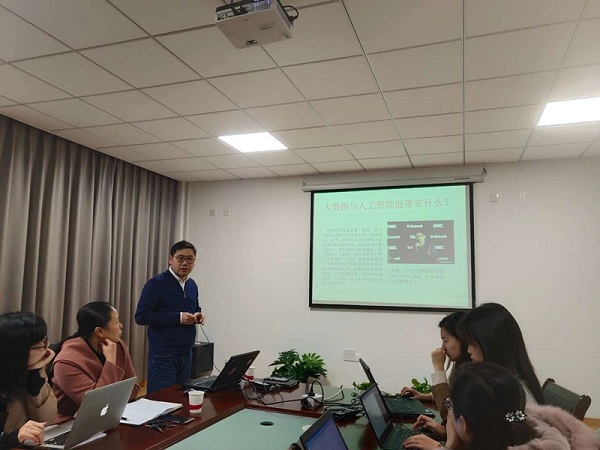 蒋博士首先介绍了大数据与人工智能给我们带来什么;其次阐述了大数据、社会网络与复杂网络的关系等等;最后通过《社交网络中的评分操纵》、《真假信息的传播》进行了实例分析。随后蒋教授和我院的骨干班教师进行了热烈的互动交流。