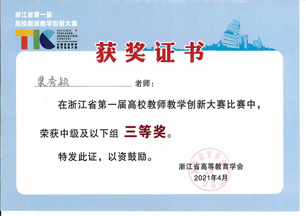 裴秀颖,宁波大红鹰学院艺术设计专业讲师,江南大学视觉设计专业硕士,2016年赴台湾昆山科技大学交流学习;主授《造型基础》、《设计色彩》、《思维训练》、《茶文化选修》等课程,教学风格生动、富于启发性,深受学生喜爱,获得宁波大红鹰学院“十佳青年”、“我心目中的好老师”、“党员示范岗先进个人”等称号,获浙江省第十届高校教师教学竞赛二等奖;主持参与省市级课题多项,撰写《宁波朱金漆木雕少儿读本》一书,编写《思维训练》专业教材,绘画作品分别入选两届宁波教师美术作品展并获奖、摄影作品获第十一届《影像中国》摄影展铜奖。