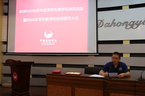 本次会议议程有2020-2021学年优秀学生教学信息员表彰、2021年学生教学信息员聘任、学生教学信息员代表发言、王志军主任讲话。王志军老师在讲话中对学生教学信息员的辛勤工作表示感谢,并对教学信息员提出了殷切的期望与谆谆嘱托。会议结束后,新聘学生教学信息员参加了学校教学信息员培训。