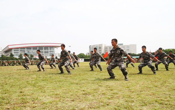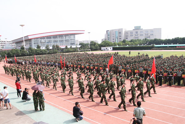 9月9日上午,我校2011级本科学生军训闭训式在校运动场举行。校领导孙惠敏、王云儿、林长兴、李羽、沈云慈及各二级学院负责人出席仪式,校军训教导队队员、2011级本科生参训学员参加了闭训式。闭训式由学生处处长、武装部部长吴勇主持。