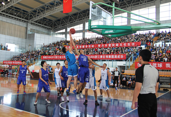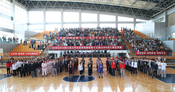 10月18日上午, ZUBA2012浙江省大学生篮球联赛暨第十五届CUBA浙江赛区预赛在我校体育馆隆重开幕。浙江省教育厅体卫艺处调研员徐建津,宁波市教育局副局长陈文辉、篮球协会主席徐定华、大体协主席戴本源,我校顾问、市篮球协会顾问王翊士,浙江省大学生篮球协会主席黄滨、副主席周勇、副主席汪玲玲、副秘书长许慧,我校党委书记孙惠敏、副校长李元益、党委副书记林长兴、副校长李羽等领导出席开幕式。参加开幕式的还有浙江大学、浙江工业大学、温州大学、宁波大红鹰学院等15所本科院校的男子篮球代表队。这也是我校升本后第二次承办此项赛事。