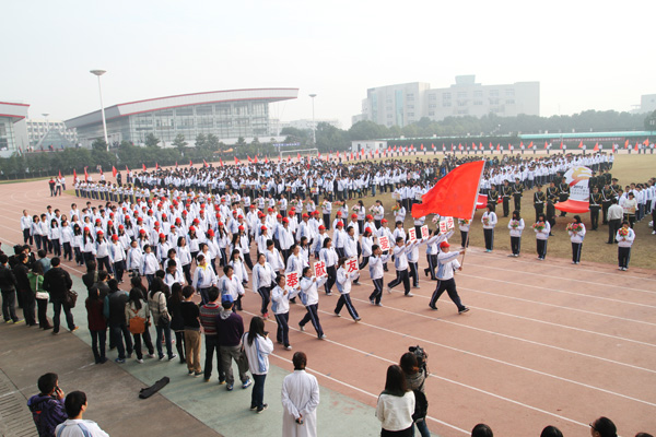 11月8日清晨,我校第九届田径运动会在运动场隆重开幕。校领导孙惠敏、李元益、林长兴、高振强、沈云慈出席开幕式,在主席台就座的还有各分院院长。开幕式由副校长李羽主持。