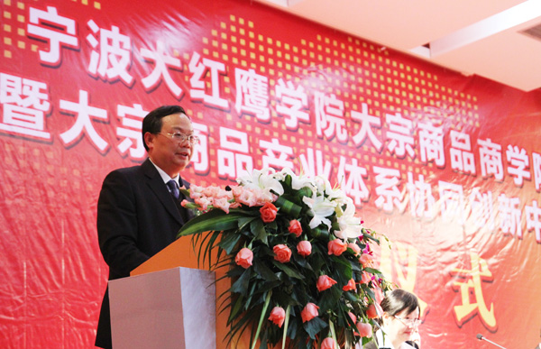 张明华副市长作了重要讲话。他强调,面对浙江省和宁波市海洋经济发展战略和大宗商品专业人才的需求,宁波大红鹰学院积极谋划,勇于探索,发挥体制机制优势,与宁波神化公司、北京长城企业战略研究所等单位合作共建大宗商品商学院,与国内著名高校、领先企业联合组建大宗商品产业体系协同创新中心,着力培养大宗商品专业人才,努力推进学科、产业协同研究,积极开展职业培训与创业孵化,并在人才培养体系、特色专业学科建设、产学研战略联盟等方面取得了阶段性成果。他说,“这些取得的成效,不仅符合我市打造海洋经济发展核心示范区的总体目标,更体现了宁波大红鹰学院主动服务地方经济社会发展的办学意识,和敢于探索、勇于创新的办学作风!”同时,他提出了两点希望:一是宁波大红鹰学院要紧抓发展机遇、进一步提升人才培养水平和科研、服务能力,争取早日建成“专业教学、职业培训、创业孵化”三位一体的大宗商品专业优势突出的一流商学院;二是协同创新中心要不断加强研究,在大宗商品产业关键领域取得有效突破,为我市大宗商品产业体系的构建和发展起到积极的促进作用。