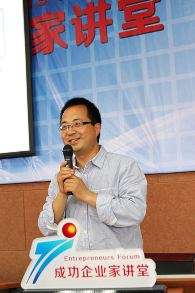 5月21日下午,我校“成功企业家讲堂”在阶梯教室203室正式开讲,浙江网盛生意宝股份有限公司监事副总裁朱小军走进“成功企业家讲堂”,以“新环境下的创新与发展”为主题,与我校600多名学生一起分享其创新、创业与发展的经验与感悟。