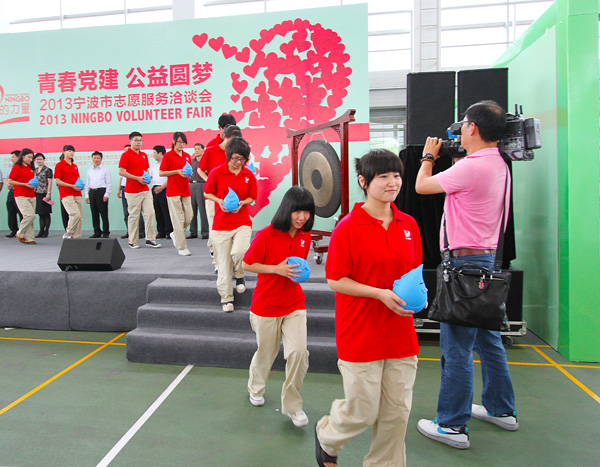 6月13日下午,以“青春党建 公益圆梦”为主题的2013年宁波市志愿服务洽谈会在我校体育馆举行。宁波市委常委、组织部长杨立平,浙江团省委副书记朱斌,宁波市委副秘书长陆志孟,市委组织部副部长、市委两新工委副书记贺威平,我校党委书记孙惠敏等领导出席活动,出席仪式的还有宁波团市委副书记钱雪华、宁波市民政局副局长许义平、慈善总会副秘书长蔡怀书、宁波市工商业联合会副主席钱爱民、宁波日报报业集团编委唐慧卿、宁波广电集团经济娱乐频率总监毛洲英等。开幕式由宁波团市委书记鲍娴萍主持。