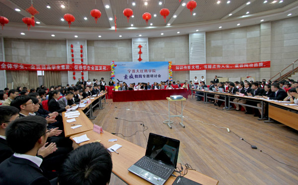 本次专题研讨会以“明德、博雅、致用、创新”为主题,旨在提高学生综合素质,全面检验我校素质教育教学成效。参加当天专题研讨活动的共有6支团队:人文学院“Magic”队、机电学院“SURPASSING”队、经管学院“经鹰”队、艺传学院“追梦人”队、信息工程学院“苍羽”队以及高职学院“启星”队。