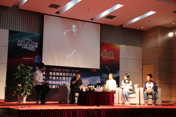 11月8日, 由校团委主办,校友协会、广播台、红鹰TV社共同承办的我校“与人生对话 寻梦想奇迹”校友访谈活动在信息楼报告厅举行,本次活动特邀“校园魔术王子”李洪杰校友为访谈嘉宾,与学弟学妹们畅谈大学生活,共话青春梦想。