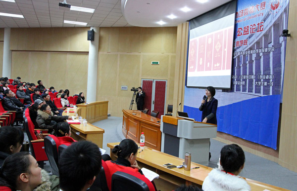 论坛上,我校经管学院院长刘莉在致辞中简要介绍了我校总体概况,并对近年来我校学生参加全国高校市场营销大赛的总体情况作了简单介绍。我校学生已连续参加了两届比赛,均取得了不俗的成绩——在第四届大赛中,取得了团体本科组二等奖;在第五届大赛中,取得了团体销售一等奖及策划一等奖、个人营销精英奖、学校优秀组织奖等诸多荣誉。
