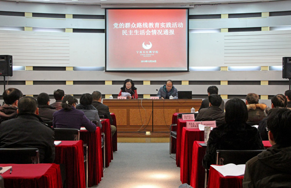 孙书记通报了校领导班子及班子个人查找出的在贯彻落实中央八项规定、我省实施的28条办法及宁波市提出的10项规定和“四风”方面存在的突出问题,如理论学习抓得不够,制度建设不够完善;民主科学决策还需完善,服务师生做得不够,有效发挥民办体制机制优势不足;艰苦创业的精气神有所松懈;倡导厉行节约不够等等。同时,她从理想信念、宗旨意识、党性修养、政治纪律、制度建设等方面剖析了产生问题的根源。