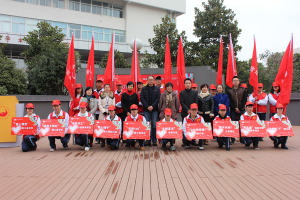 仪式上,青年志愿者工作指导中心主任梅一科同学首先宣读了2014年度校级重点志愿服务项目名单:“光洒信宜”、“鄞州公园—绿衣使者”、“关爱马路天使”、“鹰速维修队”、“爱在你我他”、“动力红鹰”、“定格童年,留住夕阳”、“鼓楼驿站”、“爱的延伸”、“喜憨儿队伍”等10个面向学生、环卫工人、智障儿童、游客、社区居民各群体的志愿者服务项目。之后,学生处、校团委有关负责人为10支志愿者服务团队授旗。