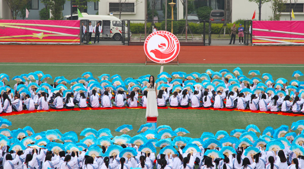 随后举行的大型团体操表演将开幕式气氛推向高潮,800余名女生的精彩表演赢得了阵阵掌声。