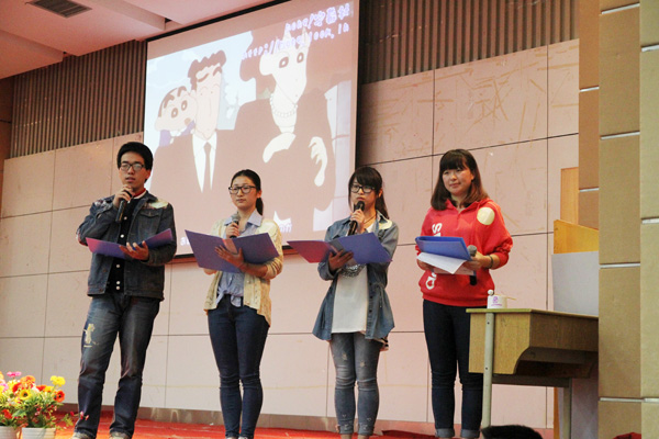 比赛中,参赛的14支代表队选配了《蜡笔小新》、《大奥》、《樱桃小丸子》等日本经典影视作品的片段,现场展示各具特色,充分展现了选手们的日语口语表达能力与演绎水平。在近3个小时的比赛中,选手们为现场师生奉献了一场生动精彩、高潮迭起的日语配音盛宴。最后,宁波大学代表队带来的配音作品《江·公主们的战国》夺得了大赛的特等奖和最高人气奖;我校12级日语1班的两支参赛队也分别获得了二、三等奖。
