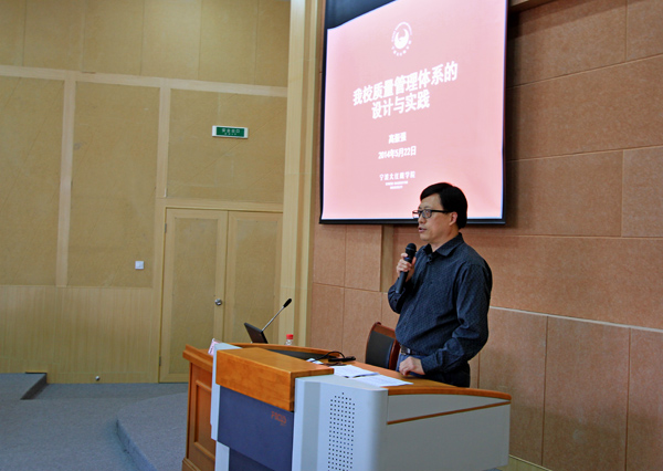 5月22日下午,我校“教育思想学习研讨”系列活动第六场专题报告会在阶梯教室202室举行,校长助理高振强做《我校质量管理体系的设计与实践》专题报告。全体中层以上干部,各二级学院学科负责人、专业带头人、教研室负责人,管理骨干培训班全体学员及有关职能部门人员等到场聆听了报告。
