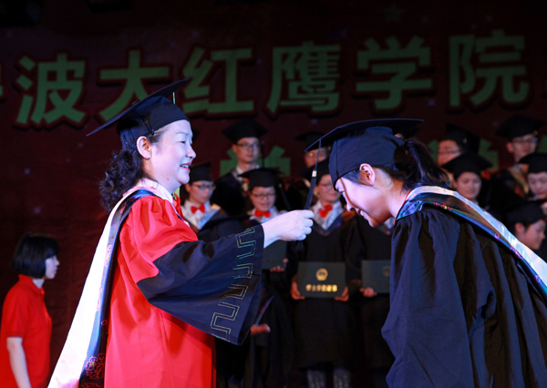 台上,校合唱团倾情演绎的《祝福》乐曲激扬;台下,等待授予学士学位的毕业生们个个意气风发,端正的学位帽,庄重的学位服,映衬着一张张青春洋溢而甜蜜的笑脸,整个大厅弥漫着收获的喜悦。
