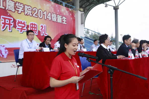 教师代表周念老师、老生代表钱楠同学在发言中用“自信·专注”的校训激励广大新生,祝愿大家在大学里做到知行合一,无愧红鹰青年的责任与担当; 2014级视觉传达专业鲍泉昊同学代表全体新生表示,将刻苦学习,努力提升自己的理论知识和实践能力,为学校各项教育事业的发展做出新贡献。