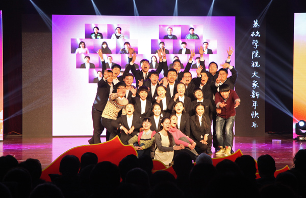 12月28日下午,我校活动中心五楼流光溢彩、歌舞欢腾,舞台两侧的对联“自信 他信 天下信”、“专注 专精 专必胜”格外醒目。 “感动大红鹰”颁奖典礼暨2015迎新文艺汇演在这里隆重举行,校领导、退休老领导和老教师等与全体教职员工齐聚一堂,共度这一盛大而难忘的时刻。