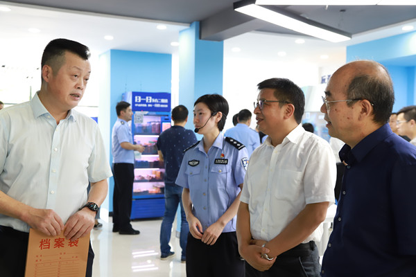 仪式结束后,与会人员实地参观我校文涛反诈工作室及反诈研究院,讲解员向大家介绍了互联网反诈平台和反诈全息智库平台。