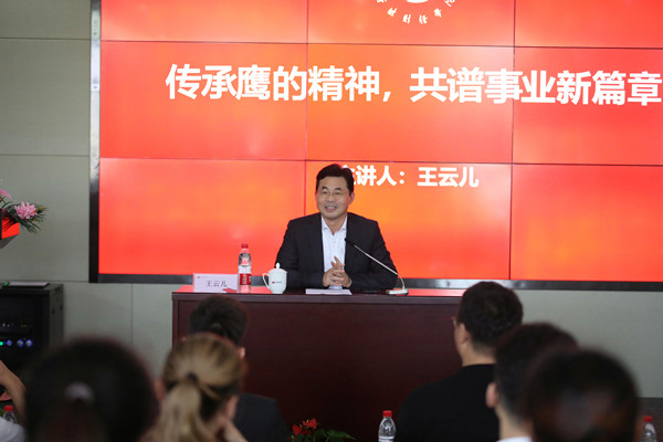 当天下午,王云儿以“传承鹰的精神,共谱事业新篇章”为题,为学员们上了研修培训第一课。他为大家讲述了“鹰的品质”和“回头鹰的故事”,希望大家能从“鹰的精神”中汲取养分、积蓄力量,充分利用这次宝贵的机会,加强学习交流和研讨,分享彼此成功经验,不断提高自己战略决策能力,增强自己的领导力和企业运营管理的综合素养,把企业发展得更好、更有竞争力,像雄鹰一样,在更加广阔的天空展翅翱翔。他希望将研修班逐步打造成为激励引导在校大学生立志成才的重要示范载体,成为集聚校友企业家资源、实现互助共赢的重要合作平台,进一步发挥好引领示范的“旗帜”和“名片”作用,进一步凝聚起宁财院校友企业家的强大力量,共同努力为推动学校事业和校友事业协同发展,为促进区域经济建设作出更大贡献!