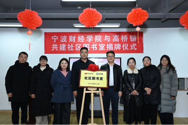 12月26日下午,我校与高桥镇在学院社区举行共建图书室揭牌仪式。本次活动由宁波财经学院图书馆和高桥镇共同主办,旨在深化校地合作,推动全民阅读,打造“家门口”的文化阵地。高桥镇党委副书记、镇长王南鹤,我校副校长许锁迪,高桥镇党委委员徐汪毓出席,我校图书馆负责人及高桥镇相关工作人员参加。我校师生代表及学院社区相关居民代表等参与了相关活动。