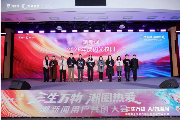 1月28日下午,由浙江日报报业集团指导、潮新闻客户端主办的“三生万物 潮圈热爱”潮新闻用户共创大会在杭州举行。会上,由我校宣传部管理运营的潮鸣号与青年共振、向时代发声,获评潮新闻“2025年度闪光校园”优秀创作集体奖荣誉称号,成为省内10所获评该荣誉的高校之一。